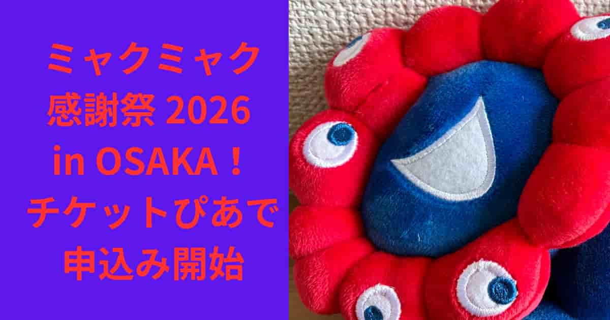 そんなあなたに朗報!2026年2月16日(月)に 『ミャクミャク感謝祭 2026 in OSAKA』 が開催されることが決定し、チケット抽選申し込みが チケットぴあでスタート しました。もう一度ミャクミャクと心躍る時間を過ごせるチャンスです。